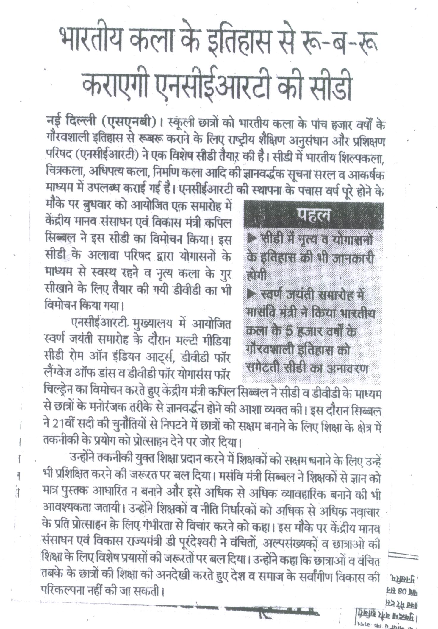 Bhartiya Kalaa ke itihaas se ru-ba-ru karayegi NCERT ki CD: September 2, Rashtriya Sahara