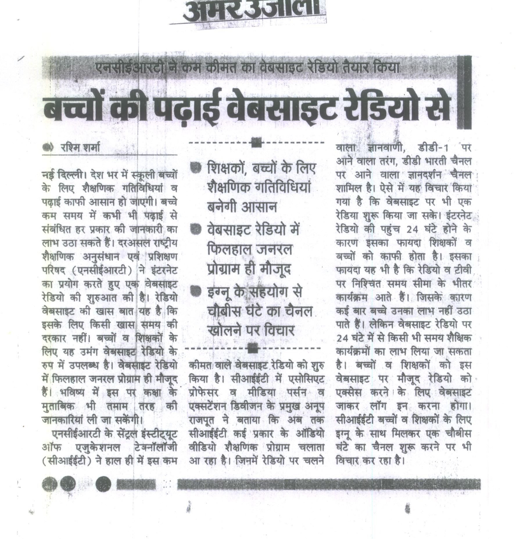 Baccho ki padhai Website Radio se: September 3, Amar Ujala