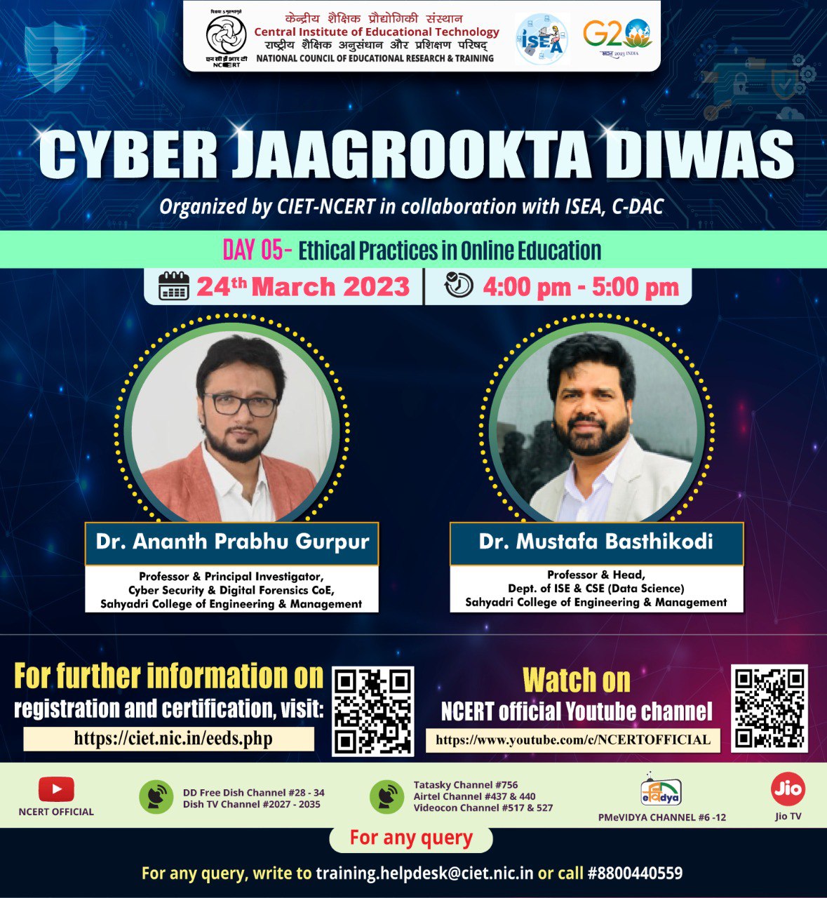 Ms. K Indraveni, Joint Director, C-DAC, MeitY,GoI Shri. Yash Dhingra, Scientist C, Cert-In, MeitY,GoI Dr. Ananth Prabhu Gurpur, Professor & Principal Investigator, Sahyadri College of Engineering & Management |