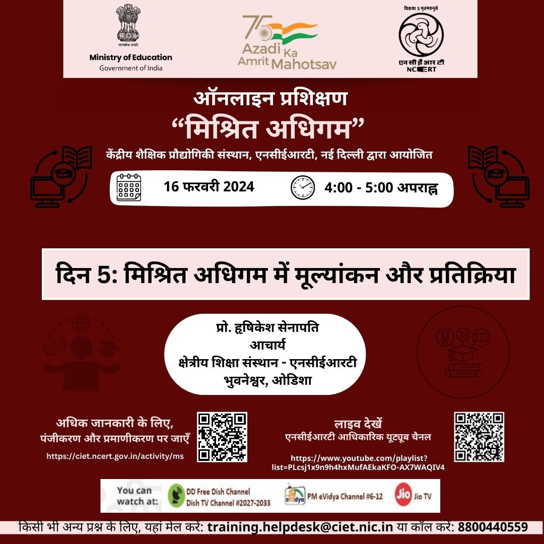 | दिन 5: शुक्रवार 16 फरवरी 2024 | मिश्रित अधिगम में मूल्यांकन और प्रतिक्रिया | प्रो. हृषिकेश सेनापति, आचार्य, क्षेत्रीय शिक्षा संस्थान, एनसीईआरटी, भुवनेश्वर, ओडिशा - 751022 | Day 5 | Presentation_Day 5 | Video |