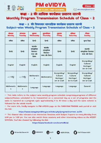 क ा – 2 क वषयवार सा ा हक काय म सारण सारणी