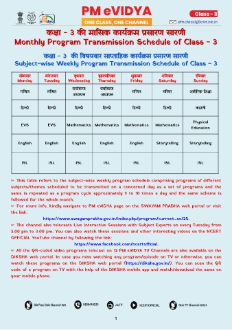 Subject-wise Weekly Program Transmission Schedule of Class – 3