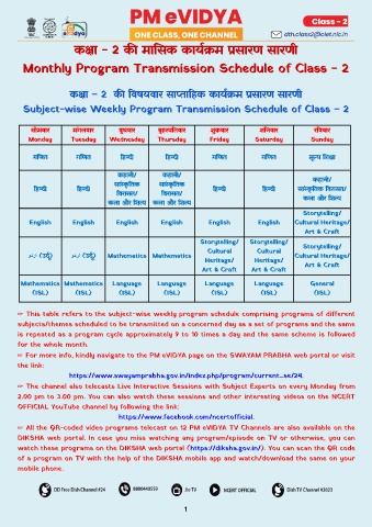 कक्षा - 2 की मासिक कार्यक्रम प्रिारण िारणी