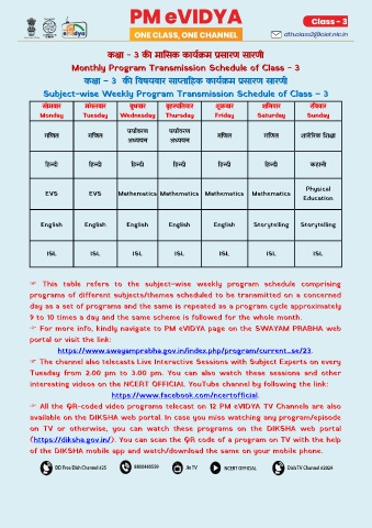 कक्षा - 3 की मासिक कार्यक्रम प्रिारण िारणी