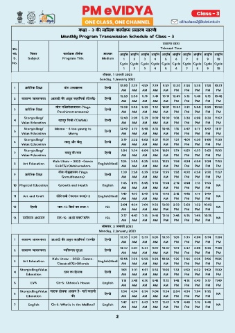 कक्षा - 3 की मासिक कार्यक्रम प्रिारण िारणी