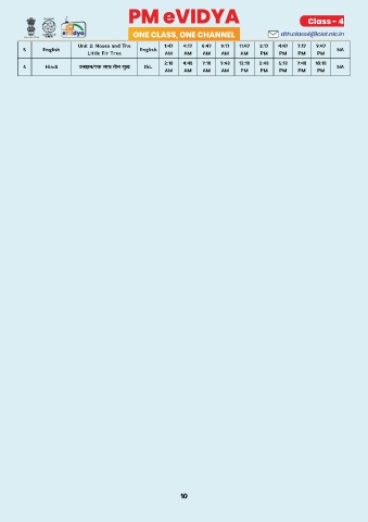 Unit 2: Noses and The 1:47 4:17 6:47 9:17 11:47 2:17 4:47 7:17 9:47 5 English English NA Little Fir Tree AM AM AM AM AM PM PM PM PM 2:18 4:48 7:18 9:48 12:18 2:48 5:18 7:48 10:18 6 Hindi उलझि/एक िाथ िीि िख ISL NA ु AM AM AM AM PM PM PM PM PM 10