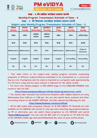 कक्षा - 5 की मासिक कार्यक्रम प्रिारण िारणी