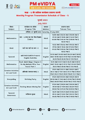 कक्षा - 5 की मासिक कार्यक्रम प्रिारण िारणी