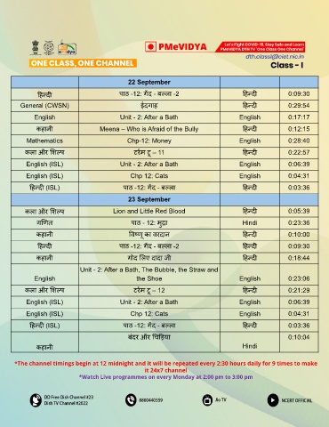 *The channel timings begin at 12 midnight and it will be repeated every 2:30 hours daily for 9 times to make