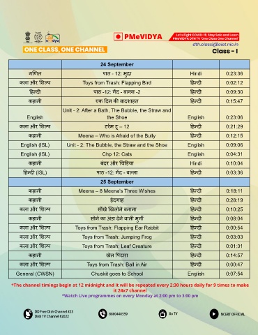 *The channel timings begin at 12 midnight and it will be repeated every 2:30 hours daily for 9 times to make