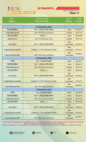 *The channel timings begin at 12 midnight and it will be repeated every 2.5 hours daily for 9 times to make it 24x7 channel