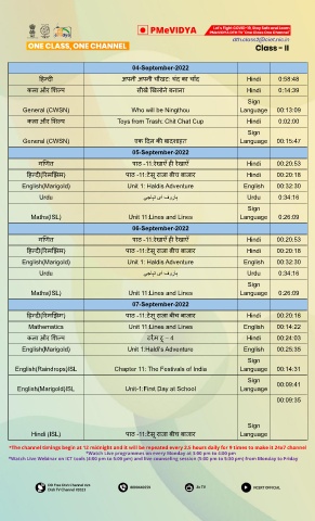*The channel timings begin at 12 midnight and it will be repeated every 2.5 hours daily for 9 times to make it 24x7 channel
