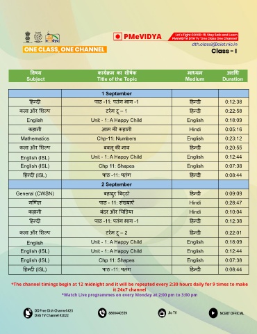 *The channel timings begin at 12 midnight and it will be repeated every 2:30 hours daily for 9 times to make