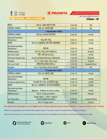 The channel timings begin at 12 midnight and it will be repeated every 2 hours daily for 11 times to make it 24x7 channel