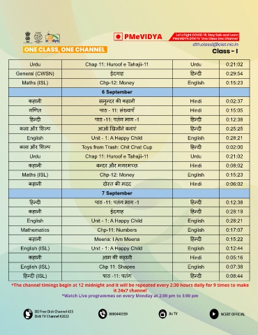 *The channel timings begin at 12 midnight and it will be repeated every 2:30 hours daily for 9 times to make