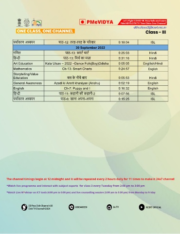 * Watch live programme and interact with subject experts for class 3 every Tuesday from 2:00 pm to 3:00 pm