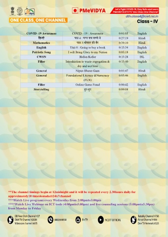 **The channel timings begin at 12midnight and it will be repeated every 2.30hours daily for