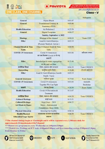 **The channel timings begin at 12midnight and it will be repeated every 2.30hours daily for