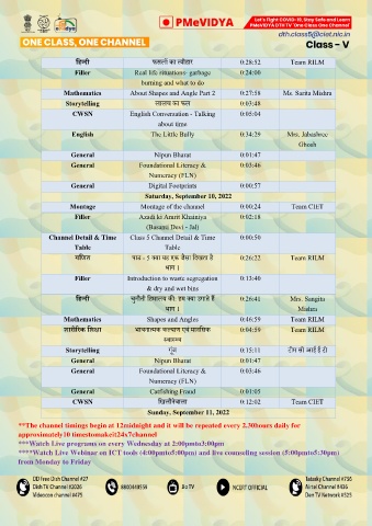 **The channel timings begin at 12midnight and it will be repeated every 2.30hours daily for