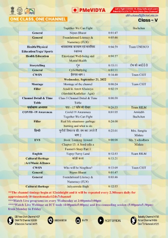**The channel timings begin at 12midnight and it will be repeated every 2.30hours daily for