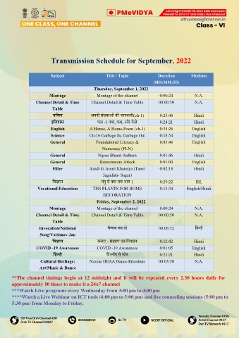 **The channel timings begin at 12 midnight and it will be repeated every 2.30 hours daily for
