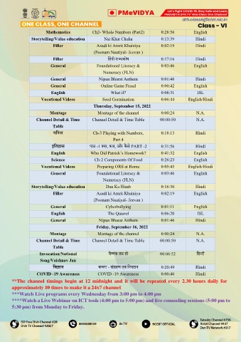 **The channel timings begin at 12 midnight and it will be repeated every 2.30 hours daily for