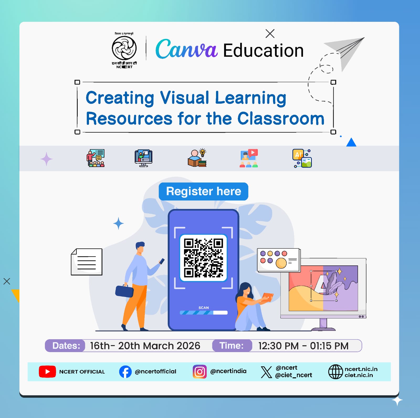 The online training on Creating Visual Learning for the Classroom is designed to help teachers create clear, engaging, and inclusive visual resources for classroom use. It aligns with the broader vision of CIET-NCERT’s online training programme, which promotes the use of technology in the teaching-learning process and draws upon the emphasis placed by NEP 2020 on the extensive use of technology, removal of language barriers, improved access, and support for educational planning and management.